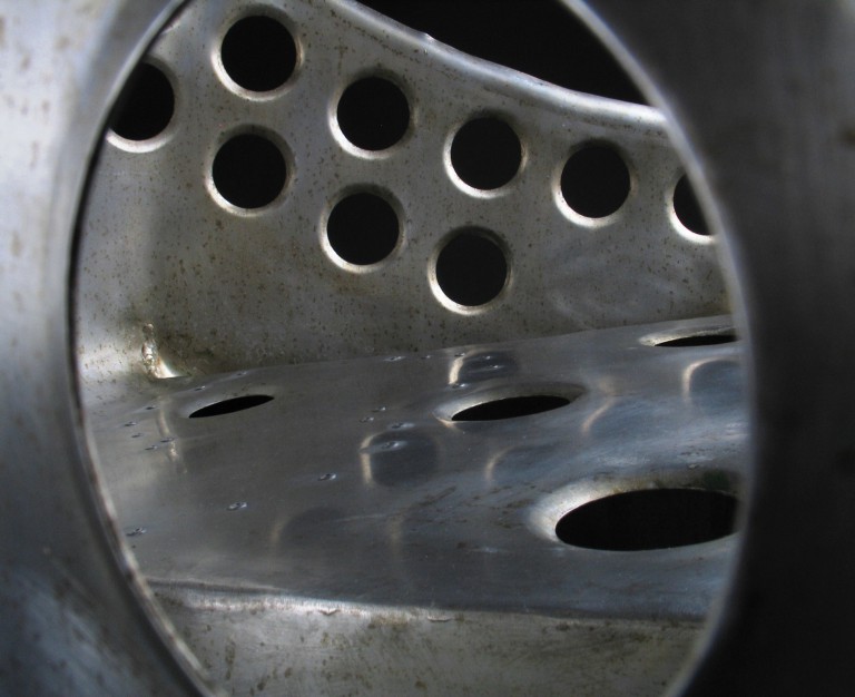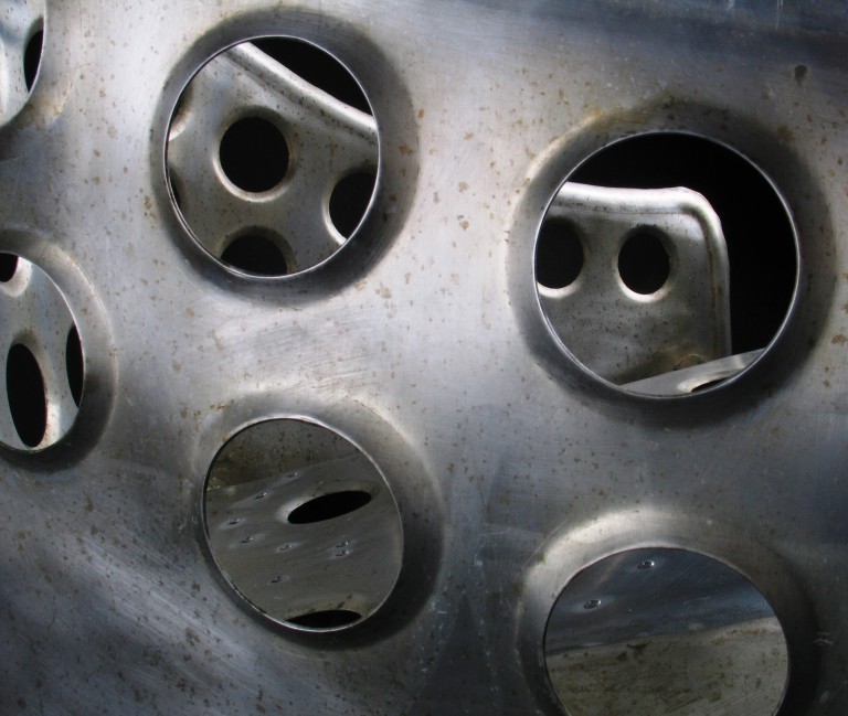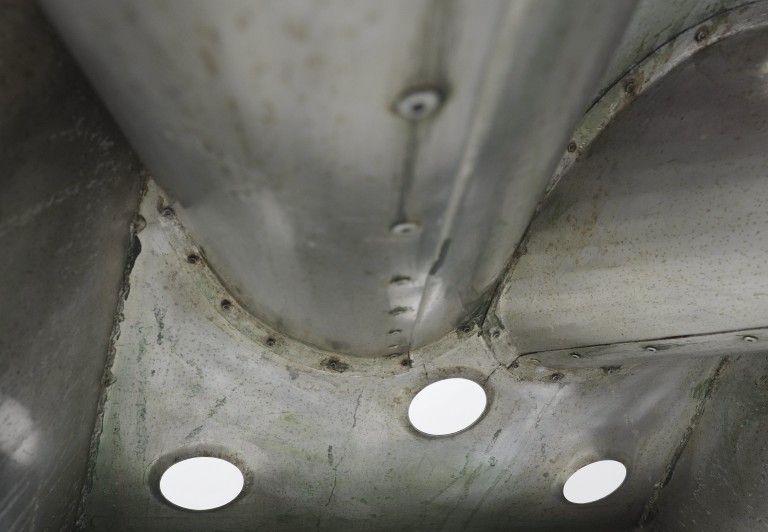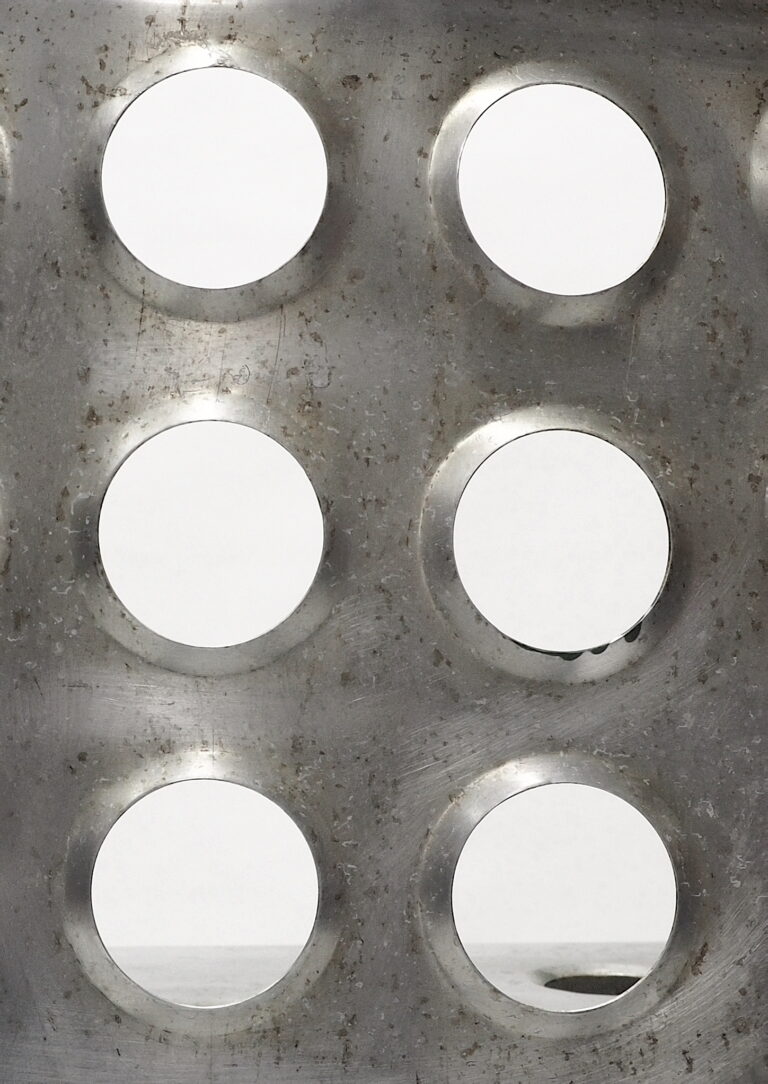 One of the most striking differences between the two high-and four low model aluminum chairs, besides the hight, is the shape of the seat-shell and the different pattern of holes pressed in. A drawing from around 1930-1940, found by the researchers in the RSA (Rietveld Schröder Archive), shows a aluminum arm chair of which the shape of the seat-shell and the pattern of holes correspond to how the high model Side Chairs are executed.
