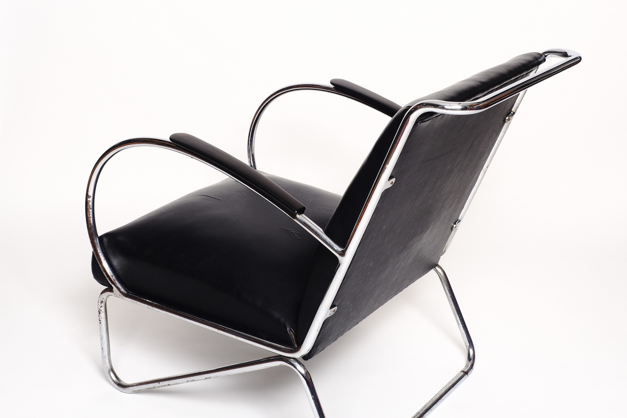Deze uitvoering met korte bakelieten armleggers is twee jaar lang in Rotterdam gemaakt, na de verhuizing van Gispen naar Culemborg werd deze fauteuil vanaf 1935 voorzien van de lange bakelieten armleggers die voor fauteuil 412 ontworpen waren.